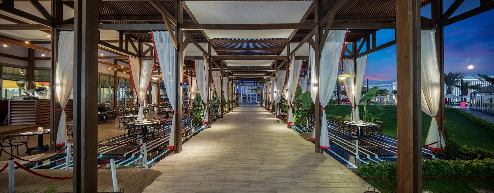 Sabah, öğle ve akşam açık büfe yemekler ücretsiz. Tesisin belirlemiş olduğu markalar dahilinde yerli ve yabancı bazı alkollü ve alkolsüz içecekler 24 saat ücretsiz.